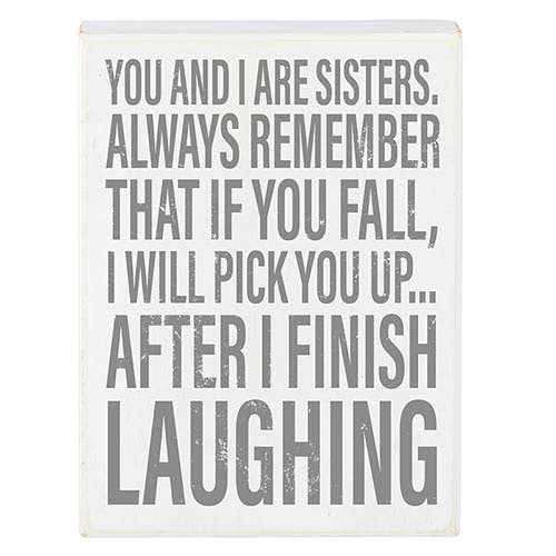 - Reads: You and I are sisters. Always remember that if you fall, I will pick you up...after I finish laughing