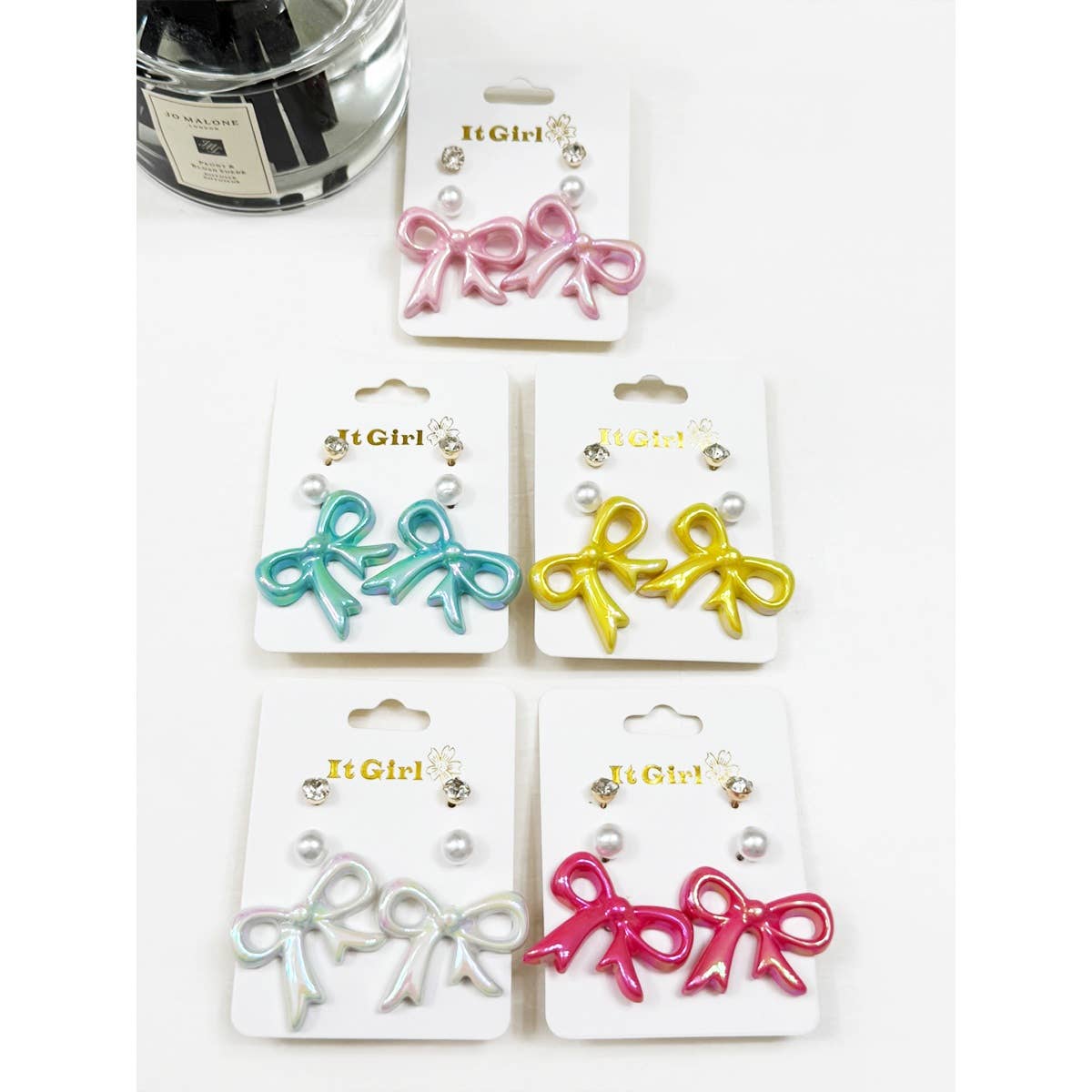 -5 Color Bow Earrings Assorted