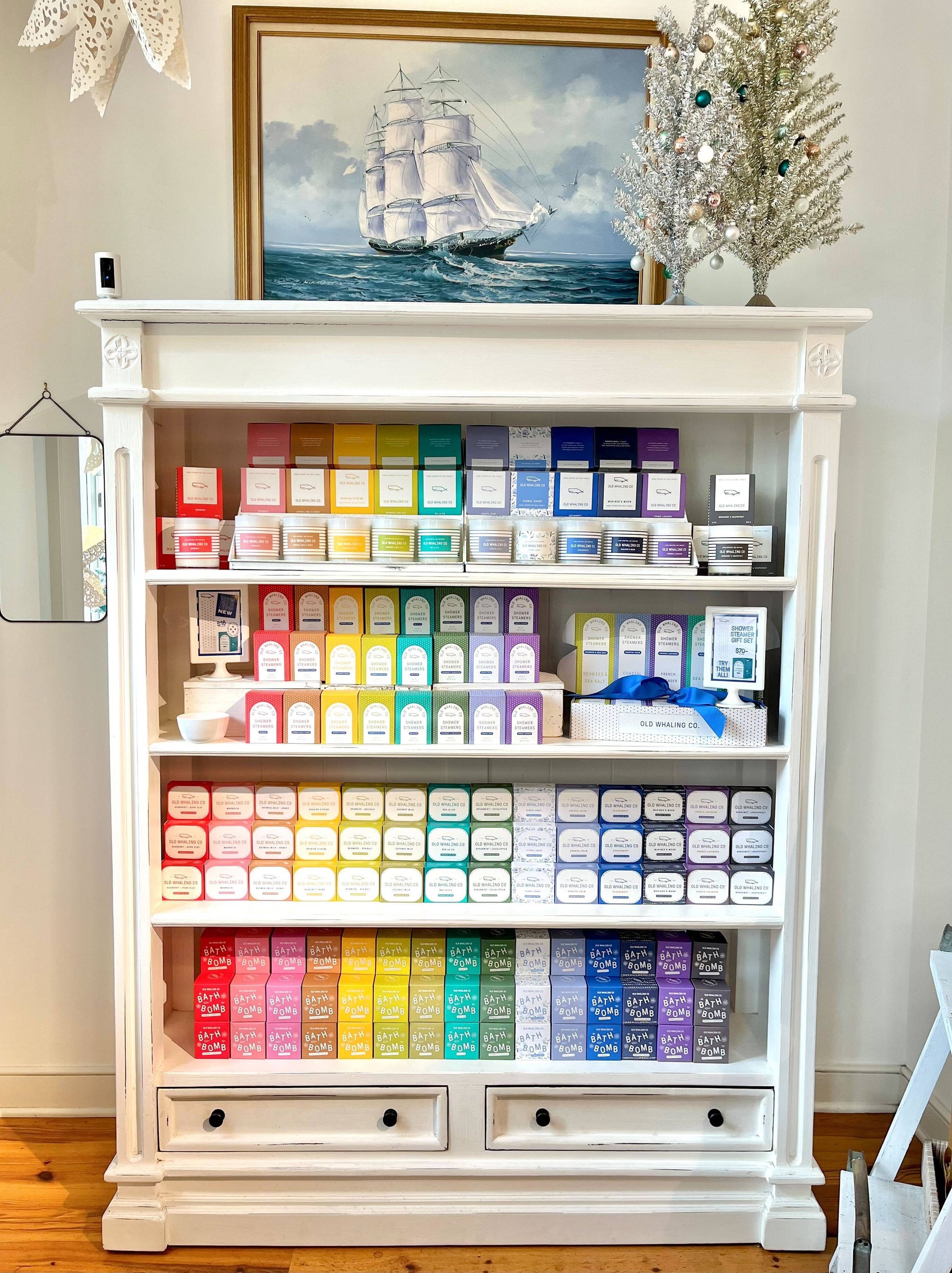 Handmade in historic Charleston, SC, with baking soda, citric acid, epsom salts, olive, and soybean oil, each Old Whaling Co. 8oz bath bomb will leave your skin feeling moisturized and lightly scented. Our handcrafted bath bomb's soothing fizz and sea-inspired fragrance are perfect for a relaxing soak, rejuvenating the senses and cleansing the skin.