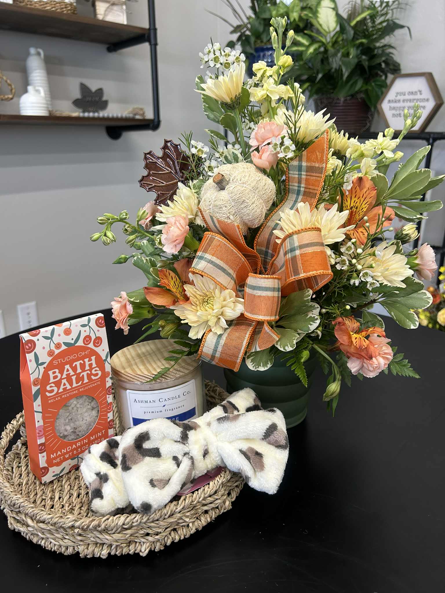 Fresh Flower arrangment and relaxing gifts.