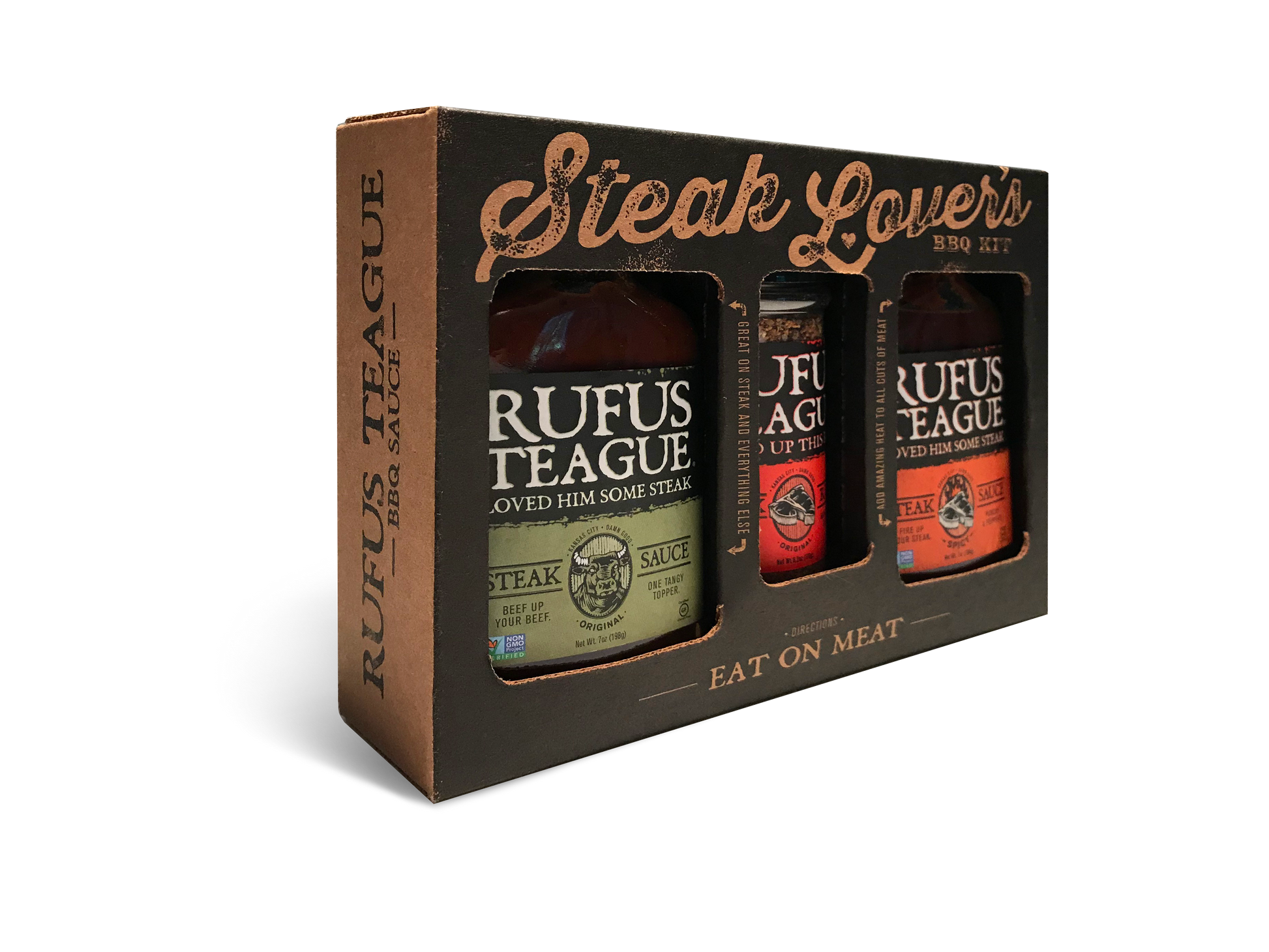 Rufus Teague knows that you don't mess with steak. So listen up if you think steak by itself is as good as it gets. This... gift kit... will... change... your... mind. Definitely not your typical grocery store steak sauce slop. Nope, these sauces are bold and bright and work on everything. And you also get a bottle of the most amazing spice your steak can handle. All in one kit!