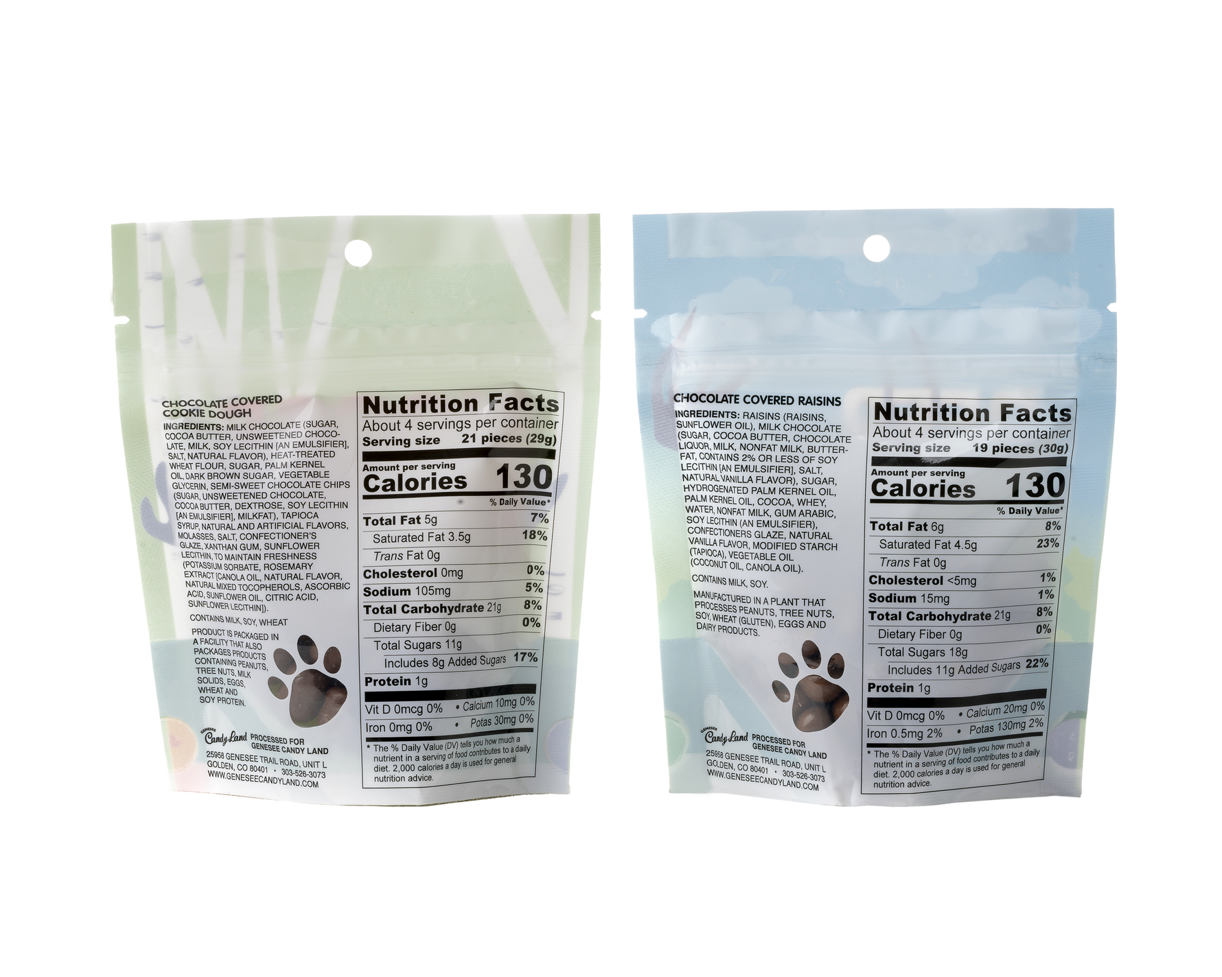 Dinosaur Chunks is colorful mix of Gummy Shaped Dinosaurs® in a 4 oz. stand up pouch. The packaging is really fun. On the back, there is a clear animal paw that shows the actual candy.