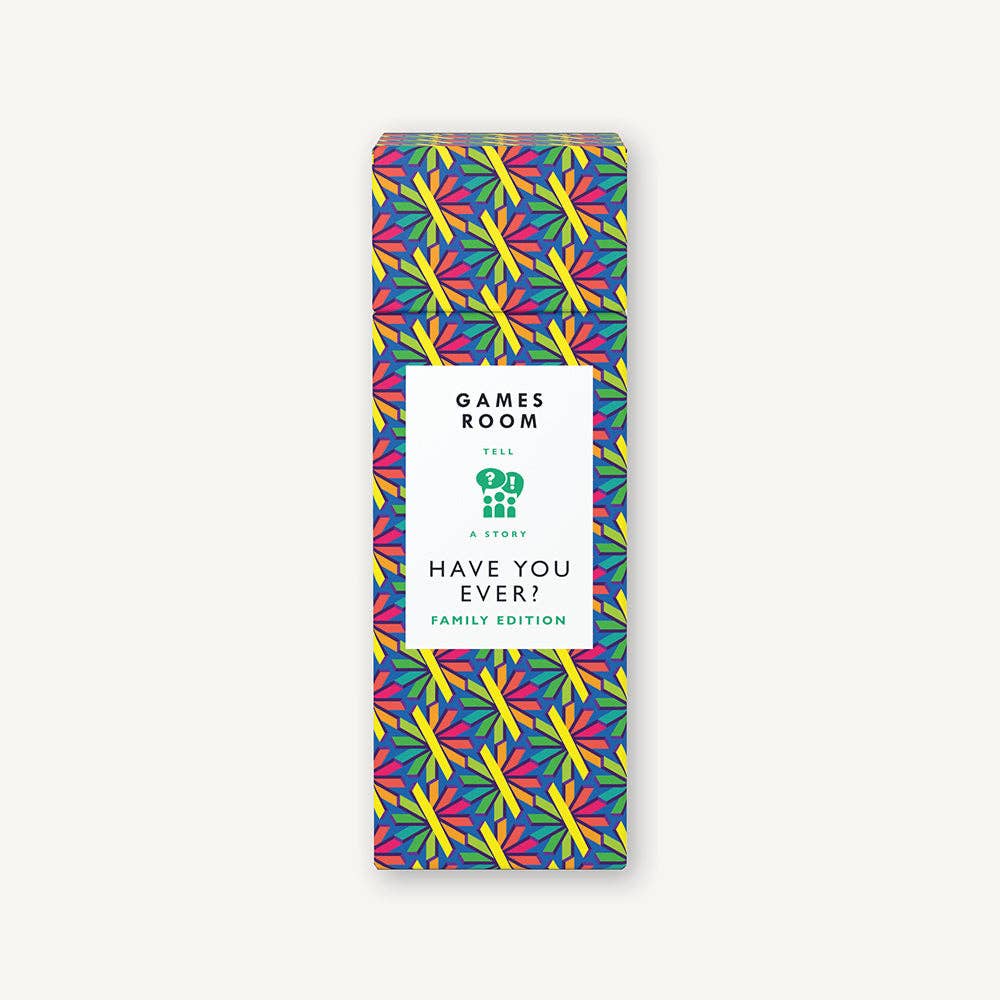 Uncover new and surprising details about your family with these all‑ages-friendly "have you ever" conversation starters. With 100 prompts on 50 double‑sided sticks, packaged in a handy, portable box, this family edition party game is perfect forbringing along on family outings or to make game night an entertaining and laugh‑out‑loud event. Pick a stick and read the question aloud for everyone to answer. One side of the stick serves easy and light-hearted questions like, Have you ever met a famous person? while the other side challenges your friends and family to answer gently embarrassing questions like, Have you ever laughed so hard you peed a little?