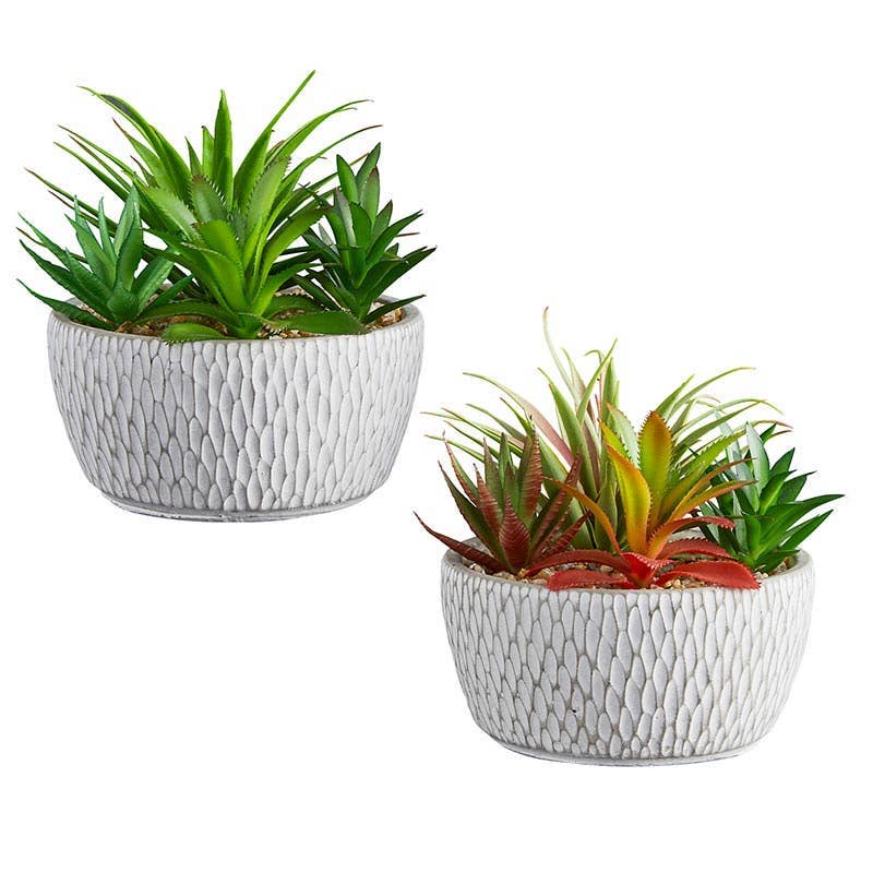 Add pops of color and texture to your décor with these aesthetically set faux succulents in cement pots.