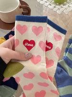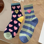 Texlina Women’s Cotton socks With Hearts and stripe patterns